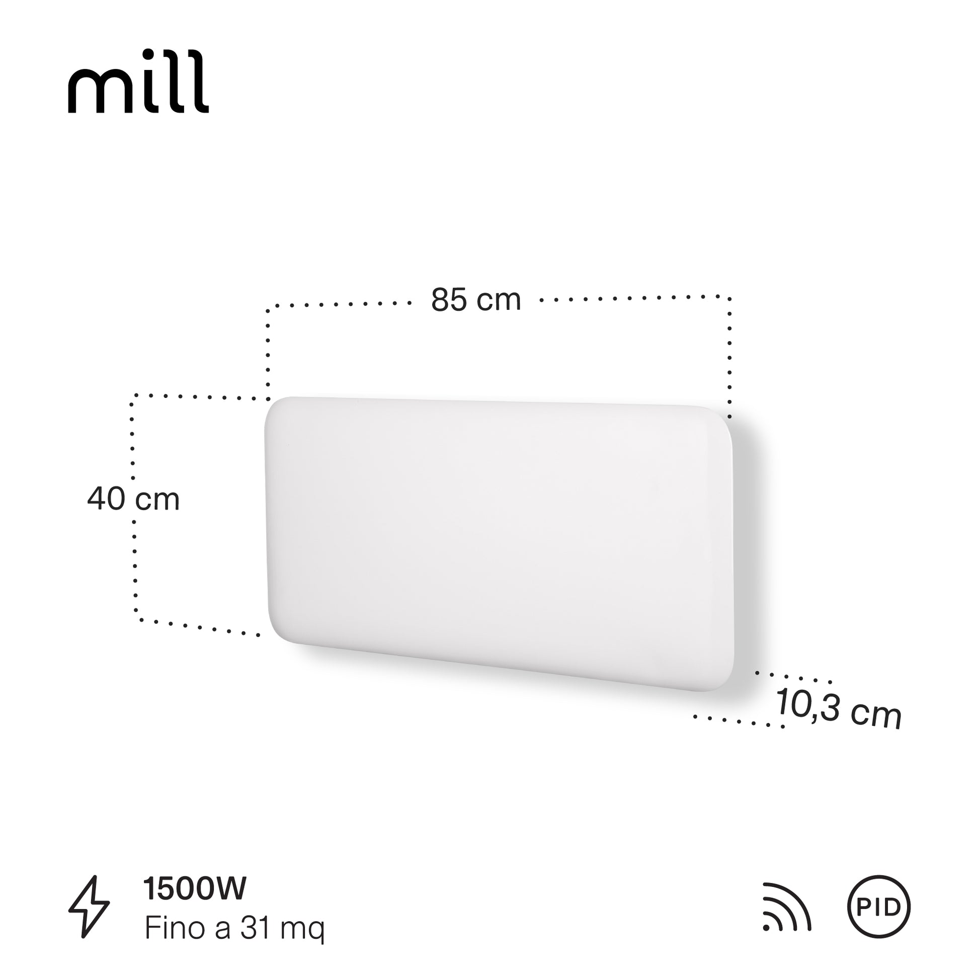 Questo termoconvettore a parete è ideale per riscaldare ambienti da un minimo di 12 mq ad un massimo di 41 mq, garantendo un comfort ottimale con un consumo energetico ridotto grazie alla tecnologia PID integrata (presente solo nei termoconvettori Mill), un sistema di controllo automatico della potenza che ti fa risparmiare fino al 30% di energia elettrica rispetto agli altri radiatori elettrici presenti sul mercato.